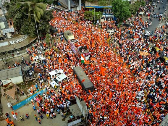 Maharashtra News: दक्षिणपंथी संगठनों के कार्यकर्ताओं ने 'लव जिहाद' (Love Jihad) के खिलाफ रविवार को मध्य मुंबई (Mumbai) में एक विशाल रैली निकाली और धर्मांतरण रोधी (Religious Conversion) कानून बनाने और धर्म के नाम पर जमीन हड़पने वालों के खिलाफ कार्रवाई की मांग की. राष्ट्रीय स्वयंसेवक संघ (आरएसएस) (RSS), बजरंग दल (Bajrang Dal) और विश्व हिंदू परिषद (वीएचपी) (Vishwa Hindu Parishad) जैसे दक्षिणपंथी संगठनों के नेताओं और कार्यकर्ताओं ने मार्च निकाला. सकल हिंदू समाज द्वारा आयोजित हिंदू जन आक्रोश मार्च, मध्य मुंबई में दादर के शिवाजी पार्क से शुरू हुआ और चार किलोमीटर से अधिक की दूरी तय करते हुए परेल के कामगार मैदान में समाप्त हुआ. इसमें हजारों लोग शामिल हुए. इस दौरान लोग भगवा रंग में दिखाई दिए.