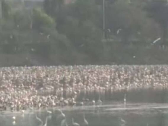 Navi Mumbai: हर साल इस सीजन में प्रवासी पक्षी भारत का रुख करते हैं और तमाम शहरों में खूबसूरत प्रवासी पक्षियों की बड़ी तादाद दिखाई देती है. इस बार भी प्रवासी पक्षियों का एक बड़ा झुंड नवी मुंबई इलाके में दिखाई दिया. फ्लेमिंगो यानि राजहंस पक्षियों का एक बड़ा झुंड सीवुड पहुंच चुका है और पानी के ऊपर गुलाबी रंग के इन पक्षियों ने एक अलग ही छठा बिखेर रखी है. अब बड़ी संख्या में लोग इन प्रवासी पक्षियों को देखने के लिए इकट्ठा हो रहे हैं. हर साल की तरह इस बार भी लाखों की संख्या में प्रवासी पक्षियों ने नवी मुंबई इलाके की नदी पर डेरा डाल दिया है.