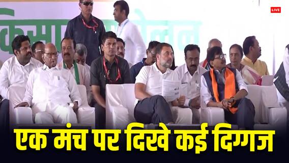 कांग्रेस सांसद राहुल गांधी, एनसीपी शरदचंद्र पवार के अध्यक्ष शरद पवार, उद्धव गुट के सांसद संजय राउत और अन्य एमवीए नेता महाराष्ट्र के नासिक में कृषि उत्पादन बाजार समिति में किसानों की बैठक में शामिल हुए.