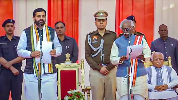 हरियाणा में मंगलवार को मनोहर लाल खट्टर के इस्तीफा देने के महज कुछ घंटे बाद ही बीजेपी के प्रदेश अध्यक्ष की जिम्मेदारी संभाल रहे नायब सिंह सैनी ने नए मुख्यमंत्री के तौर पर कमान संभाल ली. सैनी के साथ बीजेपी के 4 विधायकों ने मंत्री पद की शपथ. इसके साथ ही एक निर्दलीय विधायक को मंत्री पद की शपथ दिलाई गई.