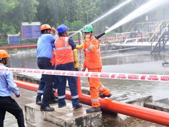 किस तरीके से करें बचाव, समझाया तरीकाघटना स्थल पर गैस रिसाव वाले स्थान पर आग लगने पर इसे उच्च लेवल की आपात स्थिति मानते हुए कंपनी प्रबंधन द्वारा जिला प्रशासन को घटना के बारे में सूचित किया गया और स्वयं जिला आपदा प्रबंधन की नोडल अधिकारी एवं डीआरओ पूनम अपनी टीम के साथ वहां पहुंची. इसके बाद एनडीआरएफ व एसडीआरएफ की टीमें विभिन्न आपदा सुरक्षा उपायों के माध्यम से हालात पर काबू पाती हैं. इस गैस लीकेज में कुछ लोग भी घिरे हुए दिखाए गए. जिन्हें संबंधित टीमों द्वारा प्राथमिक सहायता देते हुए उसे नजदीकी अस्पताल में इलाज के लिए पहुंचाया. इसके अलावा यह भी दिखाया गया कि आपातकाल के दौरान किस तरीके से बचाव कार्य को अंजाम देना चाहिए, क्योंकि पेट्रोलियम पदार्थ बहुत ज्वलनशील पदार्थ है इसलिए उसे किस तरीके से बचाव किया जा सकता है.