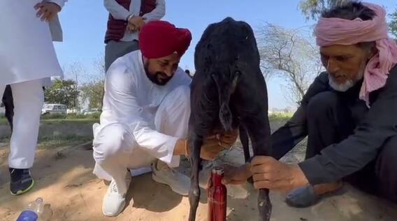 सीएम चन्नी ने भदौर में बकरी का दूध निकाला