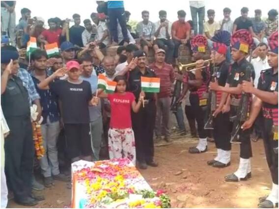 देशभक्ति के नारे लगाकर सैनिक को दी गई श्रद्धांजलि