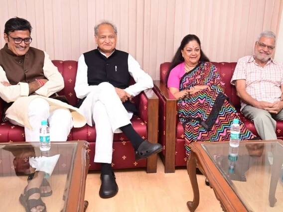 साथ बैठे मुस्कुराते दिखे गहलोत और राजेइस तस्वीर में अशोक गहलोत और चुरु विधानसभा क्षेत्र से बीजेपी विधायक राजेंद्र राठौर एक ही सोफे पर बैठे हैं जबकि दूसरे सोफे पर सीपी जोशी और पूर्व सीएम वसुंधरा राजे नजर आ रही हैं. सभी के चेहरे पर मुस्कान साफ झलक रही है. यह महज एक कार्य़क्रम के दौरान हुई औपचारिक मुलाकात है और इसका विधानसभा चुनाव से कोई लेनादेना नहीं है.