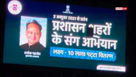 लेकिन एलईडी स्क्रीन पर पूर्व मुख्यमंत्री अशोक गहलोत के समय (2 अक्टूबर 2021) का विज्ञापन चलते हुए नजर आया. इस विज्ञापन में “प्रशासन शहरों के संग अभियान, लक्ष्य 10 लाख पट्टा वितरण” से संबंधित प्रचार प्रसारित हो रहा था.