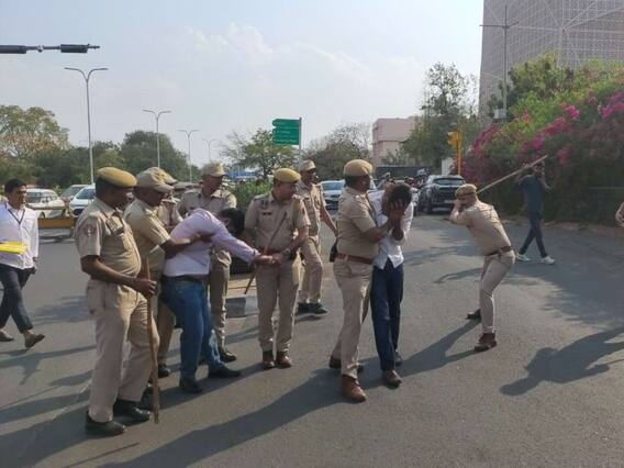 Rajasthan News: राजस्थान यूनिवर्सिटी के कार्यक्रम में शामिल होने आए मुख्यमंत्री अशोक गहलोत को विश्वविद्यालय गेट से बाहर निकलते समय ABVP के 6 छात्रों ने काले झंडे दिखाए थे. उसके बाद गांधी नगर थाने की पुलिस ने सभी छात्रों को थाने लाई, लेकिन काले झंडे दिखाते समय पुलिस ने उसी समय सड़क पर जमकर पिटाई की है. इसका वीडियो सोशल मीडिया पर खूब वायरल हो रहा है. लेकिन अब कार्यकर्ता ABVP लगातार गांधी नगर थाने का घेराव कर रहे हैं.