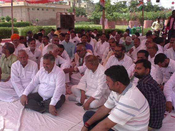 Congress Satyagrah in Bharatpur: राजस्थान के भरतपुर जिले में आज राहुल गांधी की सदस्यता रद्द करने के विरोध में पाई बाग स्थित गांधी पार्क में जिला कांग्रेस के पदाधिकारियों ने सत्याग्रह किया है. इस सत्याग्रह में जिले के सभी कार्यकर्ताओं ने हिस्सा लिया. इस मौके पर कांग्रेस नेताओं ने कहा कि बीजेपी ने दोगली नीति के तहत राहुल गांधी की सदस्यता रद्द की है, लोकतंत्र की हत्या की जा रही है इसलिये कांग्रेस पार्टी द्वारा सत्याग्रह किया जा रहा है.
