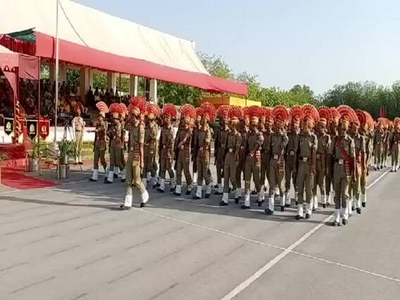 Convocation Parade Ceremony in Jodhpur: राजस्थान (Rajasthan) के जोधपुर में बुधवार को सीमा सुरक्षा बल (BSF) का दीक्षांत परेड समारोह सहायक प्रशिक्षण केंद्र की तरफ से चंदन सिंह चंदेल ड्रिल ग्राउंड (Chandan Singh Chandel Drill Stadium) में आयोजित किया गया. इस समरोह में बैच संख्या 243-244 के 441 नव आरक्षकों ने भारतीय संविधान के प्रति कर्तव्यनिष्ठ होकर देश की एकता और अखंडता को कायम रखने की शपथ ली. इस मौके पर मुख्य अतिथि पूर्व राज्यसभा सांसद गज सिंह (Gaj Singh) थे. उन्होंने समारोह में नव आरक्षकों को शपथ दिलाई. साथ ही परेड का निरीक्षण कर सलामी ली.