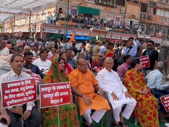 जनप्रतिनिधि ने सम्भाला मोर्चाइस दौरान राजसमंद सांसद दीया कुमारी, जयपुर शहर सांसद रामचरण बोहरा, पूर्व मंत्री अरुण चतुर्वेदी, मालवीय नगर विधायक कालीचरण सराफ, विप्र सेना प्रमुख सुनील तिवाड़ी मौजूद हैं. वहां पर श्री राम जय राम जय राम का जाप भी हो रहा है. राज्यसभा सांसद घनश्याम तिवाड़ी भी शामिल हुए हैं. धरने में बड़ी संख्या में महिलाएं भी शामिल हुई हैं. इस मौके पर सांसद दीया कुमारी ने कहा- कांग्रेस सरकार वोट बैंक के लिए तुष्टिकरण की राजनीति कर रही है. उन्होंने खुलकर अपनी बात कही है.