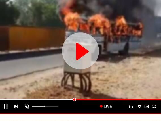 सड़क पर बर्निंग बस का लाइव वीडियो