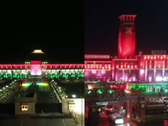 Rajasthan News: देश की आजादी के 75 साल (Independence Day) पूरे हो रहे हैं और देश भर में आजादी का अमृत महोत्सव (Azadi ka Amrit Mahotsav) मनाया जा रहा है. अमृत महोत्सव के दौरान हर घर तिरंगा फहराया जा रहा है. वहीं तिरंगा रैली भी निकाली जा रही है हर घर तिरंगा नजर आ रहा है. इसी सिलसिले में जोधपुर के हाई कोर्ट (Rajasthan High Court) और रेलवे स्टेशन (Jodhpur railway station) को खूबसूरत तिरंगे की रोशनी में सजाया गया है. तिरंगे की रंगीन रोशनी का नजारा बहुत खूबसूरत नजर आ रहा है.