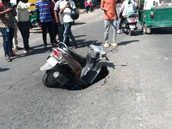 Jodhpur Scooty Case: राजस्थान के दूसरे बड़े जिले जोधपुर (Jodhpur) में सड़कों के हालात बारिश के बाद से बहुत खराब हो चुके हैं. जगह जगह सड़के टूटी हुई हैं जिसके चलते हादसे भी हो रहे है. अगर आप जोधपुर शहर में सड़कों पर ट्रेवल कर रहे हैं तो थोड़ा सावधान हो जाएं क्योंकि सड़क कहीं से भी कभी भी धंस सकती है. इससे आप किसी बड़े हादसे के शिकार भी हो सकते हैं. हम ऐसा यूं ही नहीं बता रहे हैं कि आज जोधपुर क भगत की कोठी रेलवे स्टेशन के बाहर की जोधपुर पाली के मुख्य सड़क अचानक से धसने से बीच सड़क गड्ढा हो गया उस गड्ढे में एक स्कूटी (Scooty) सवार बुजुर्ग गड्ढे में गिर गया हादसे को देखकर राहगीर रुके और बुजुर्ग व्यक्ति को गड्ढे से बाहर निकाला और प्रशासन को जानकारी दी.