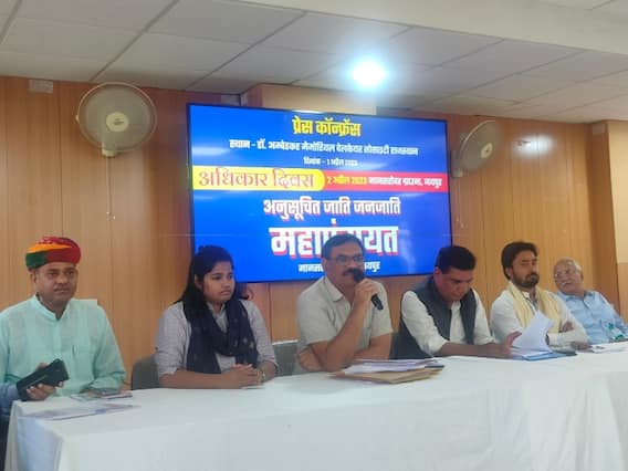 जयपुर: जाट महापंचायत और ब्राह्मण महासभा के बाद अब आज जयपुर में अनुसूचित जाति और जनजाति की महापंचायत होगी. इसमें कई बड़े मुद्दे और मांगें सामने आने वाली हैं. हालांकि आयोजक इसे राजनीतिक रंग नहीं देना चाहते हैं. यह कार्यक्रम शहर के शिप्रापथ पुलिस थाने के सामने आवासन मण्डल की खाली जमीन पर दिन में 11 बजे शुरू होगा.इसमें प्रदेश के कई दिग्गज नेता शामिल होंगे. इसके साथ ही बड़ी संख्या में लोगों के आने की संभावना है. इसके लिए कुछ जगहों पर बसों के इंजताम भी किए गए हैं. आयोजकों का मानना है कि एक लाख से कम भीड़ नहीं होगी. यहां पर पूरी तैयारी की गई है.