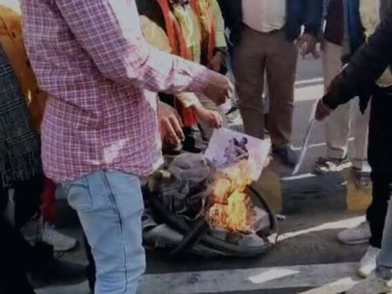 Shah Rukh Khan Film Pathaan Controversy: शाहरुख खान (Shah Rukh Khan) की आनेवाली फिल्म पठान (Pathaan) पर जारी विवाद के बीच राजस्थान (Rajasthan) के अलवर में विरोध शुरू हो गया है. हिंदूवादी संगठनों ने सड़क पर उतरकर शाहरुख खान और अभिनेत्री दीपिका पादुकोण (Deepika Padukone) के पोस्टर जलाए. नंगली सर्किल पर जुटे कार्यकर्ताओं ने शाहरुख खान और दीपिका पादुकोण के खिलाफ नारेबाजी भी की. प्रदर्शनकारियों में ब्रजभूमि कल्याण परिषद, विश्व हिंदू परिषद और बजरंग दल के कार्यकर्ता शामिल थे.