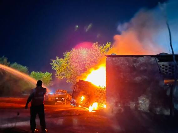 Chittorgarh Petrol Tanker Blast: उदयपुर संभाग के चित्तौड़गढ़ जिले में सोमवार देर रात बड़ी घटना हो गई. पेट्रोल टैंकर फटने से तीन लोग बुरी तरह झुलस गए. ओछ्ड़ी टोल प्लाजा के पास ढाबा पर पेट्रोल टैंकर खड़ा था. अचानक पेट्रोल टैंकर में जोर का धमाका हुआ. धमाके के बाद आग का गुब्बार आसमान में दूर-दूर तक देखा गया. आग ने देखते-देखते विकराल रूप धारण कर लिया. आग की भवायहता का अंदाजा इसी से लगाया जा सकता है कि 5 किलोमीटर दूर आसमान में धुआं उठता हुआ दिखाई दे रहा था.