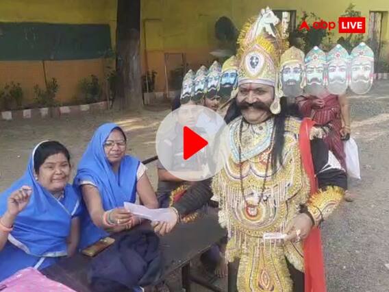 रावण के वेश में मतदान करने पहुंचा व्यक्ति