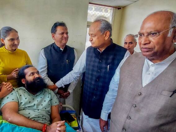 Rajasthan Election 2023 News: कांग्रेस अध्यक्ष मल्लिकार्जुन खरगे और मुख्यमंत्री अशोक गहलोत ने शनिवार को यहां के एसएमएस अस्पताल में दलित इंजीनियर हर्षादिपति वाल्मीकि से मुलाकात की. इन दोनों नेताओं ने इस मामले में आरोपी विधायक को भारतीय जनता पार्टी द्वारा विधानसभा चुनाव में टिकट दिए जाने की आलोचना की और इसे उसकी दलित विरोध सोच का नमूना बताया.