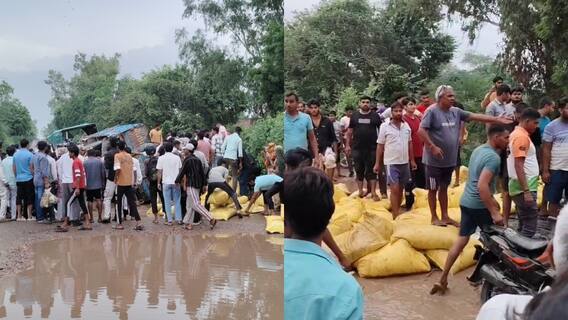 राजस्थान के भरतपुर जिले में सड़कों की हालत खस्ता पड़ी हुई है. सड़क में हो रहे गहरे गड्ढे और बरसात में गड्ढों में पानी भर जाता है. खस्ता हाल सड़क पर गड्ढों के कारण खाद के कट्टों को लेकर जा रही ट्रैक्टर ट्रॉली पलट गई, जिसके साइड में जा रहे बाइक सवार मां-बेटे ट्रैक्टर ट्रॉली के नीचे दब गए और उनकी मौत हो गई.