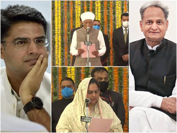 सबसे पहले वरिष्ठ नेता गुड़ामालानी से विधायक हेमा राम चौधरी को शपथ दिलाई. दूसरे नंबर पर बांसवाड़ा से महेंद्र जीत सिंह मालवीय, तीसरे नंबर पर रामलाल जाट, चौथे नम्बर पर जयपुर के हवामहल से महेश जोशी, पांचवे डीग कुम्हेर विश्वेन्द्र सिंह, छटा नम्बर सपोटरा से रमेश मीणा, सातवें नम्बर पर ममता भूपेश बैरवा, आठवें नम्बर पर वैर भुसावर से भजन लाल जाटव, नवें नम्बर पर अलवर ग्रामीण से है विधायक राज्यमंत्री से अब कैबिनेट मंत्री के रूप में टिका राम जुली, दसवें नम्बर पर खाजूवाला से विधायक, नोखा से भी विधायक रह चुके हैं गोविंद राम मेघवाल, ग्यारवें नम्बर पर बानसूर से विधायक शकुंतला रावत . झुंझुनूं से विजेंद्र सिंह ओला दौसा से मुरारीलाल मीणा, उदयपुरवाटी से राजेंद्र सिंह गुढा, कामा से ज़ाहिदा ने शपथ ली.