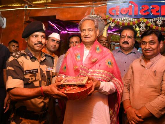 Rajasthan News: राजस्थान कांग्रेस में सीएम की कुर्सी को लेकर घमासान जारी है. इस बीच सूबे के मुखिया मुख्यमंत्री अशोक गहलोत जैसलमेर में स्थित विख्यात तनोट माता मंदिर पहुंचकर पूजा-अर्चना की. यहां उन्होंने मां तनोट राय के दर्शन कर आशीर्वाद लिया. देश व प्रदेश की समृद्धि और देश की सीमा पर तैनात सेना एवं सीमा सुरक्षा बल के जांबाज जवानों की सुरक्षा और खुशहाली की कामना की.
