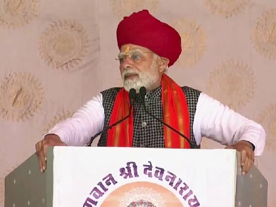 PM Naredra Modi In Rajasthan: राजस्थान (Rajasthan) में विधानसभा चुनाव (Aseembly Election) से पहले कांग्रेस (Congress) के परंपरागत गुर्जर वोट बैंक को अपना बनाने के लिए प्रधानमंत्री नरेंद्र मोदी (Narendra Modi) शनिवार को मेवाड़ दौरे पर आए. वह गुर्जर समाज (Gurjar Community) के आराध्य भगवान देवनारायण (Bhagwan Devnarayan) के 1111वें जन्मोत्सव के मौके पर आयोजित धार्मिक कार्यक्रम में शिरकत कर आस्था के साथ गुर्जरों को अपना बता गए. समाज को संकेतों में समझा दिया कि गुर्जरों का बीजेपी से गहरा नाता है. दोनों की पैदाइश कमल के फूल से ही हुई है.