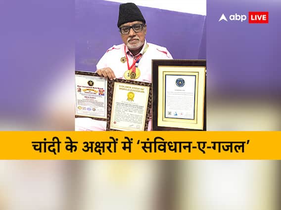 Udaipur News: उदयपुर के स्वर्ण शिल्पकार डॉ. इकबाल सक्का ने अनोखा काम किया है. उन्होंने भारतीय संविधान को गजल के रूप में लिखा है. संविधान को एक साथ तीन वर्ल्ड रिकॉर्ड से नवाजा गया है. इकबाल सक्का अलग-अलग सूक्ष्म वस्तुओं को बनाकर अब तक नेशनल और इंटरनेशनल 100 अवार्ड अपने नाम कर चुके हैं. सभी वस्तुएं सोने (गोल्ड) से ही बनाते हैं. सक्का के अनुसार संविधान की गजलमयी विशेषताओं को चर्मपत्र पर 120 पन्नों में 615 शायरी के माध्यम से उकेरा गया है. उन्होंने प्रथम पृष्ठ पर शीर्षक ‘संविधान-ए-गजल’ को चांदी के अक्षरों में लिखा है. जानते हैं कौन से अवॉर्ड अपने नाम किये और क्या है 'संविधान-ए-गजल'.