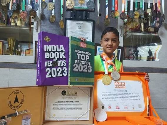 Kota News: राजस्थान के कोटा के रहने वाले 6 साल के लक्ष्य अग्रवाल ने छह साल की उम्र में वो कारनामा कर दिखाया है, जिसे करने में बड़े बड़ों के पसीने छूट जाते हैं. जानकारी के अनुसार लक्ष्य को दौड़ लगाने का काफी शौक है. उनके दौड के प्रति जुनून और देश प्रेम का जज्बे ने एक ऐसा कारनामा कर दिखाया है, जिसे करना अच्छे अच्छों को बस में नहीं है. 6 साल के लक्ष्य अग्रवाल ने बड़ी ही बहादुरी के साथ देश प्रेम व दौड़ के प्रति अपना उत्साह दिखाया. लक्ष्य ने स्वतंत्रता दिवस 15 अगस्त 2023 को 2 घंटे 7 मिनट 16 सेकंड हाथ में तिरंगा लिए 11.77 किलोमीटर बिना रुके दौड़ लगाकर अपना नाम एशिया बुक ऑफ रिकॉर्ड्स और इंडिया बुक्स ऑफ रिकॉर्ड्स में दर्ज कराया है.