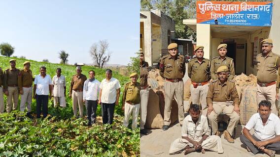 Rajasthan Crime News: जालौर पुलिस मादक पदार्थों की तस्करी की रोकथाम के लिए अभियान छेड़े हुए है. नशा तस्कर लगातार शिकंजे में आ रहे हैं. बिशनगढ़ में पुलिस को एक बार फिर सफलता मिली. पुलिस ने अफीम के पौधे जब्त कर दो आरोपियों को गिरफ्तार कर लिया. मुखबिर से सूचना मिली थी कि एक बीघा जमीन पर 1 लाख 5 हजार अफीम के पौधे बोए गए हैं. मौके पर धावा बोलने गई पुलिस अरंडी के बीच अफीम की खेती देख हैरान रह गई. बताया जा रहा है कि पौधों से 29 किलो अफीम का दूध और 212 किलो डोडा पोस्त तैयार होना था.