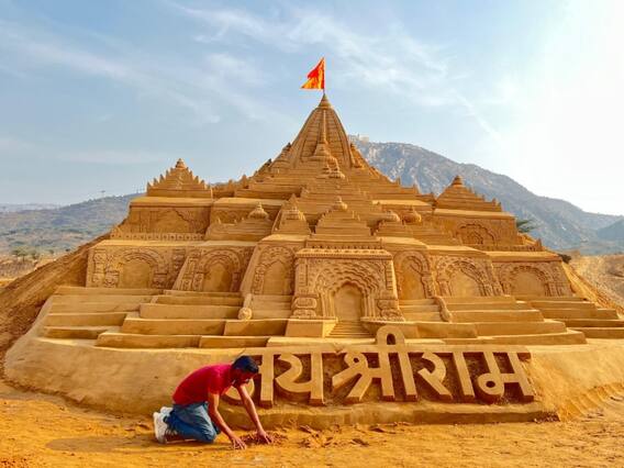 Rajasthan Ram Tempal: एक तरफ जहां अयोध्या के राम मंदिर में रामलला की प्राण प्रतिष्ठा को लेकर तैयारियां हो रही हैं. वहीं राजस्थान में भी इसका पूरा असर दिखाई दे रहा है. अजमेर जिले के पुष्कर के एक सैंड आर्टिस्ट ने सबसे बड़े राम मंदिर की कलाकृति बनाई है. जिसे पिछले एक महीने से बनाया जा रहा था. सैंड आर्टिस्ट अजय रावत ने बताया कि पिछले एक महीने से सैंड पार्क में वो मंदिर की कलाकृति बना रहे थे. हर दिन इसपर उन्होंने दो से चार घंटे काम किया और इसमें 1000 टन से ज्यादा रेत काम में लाई गई.