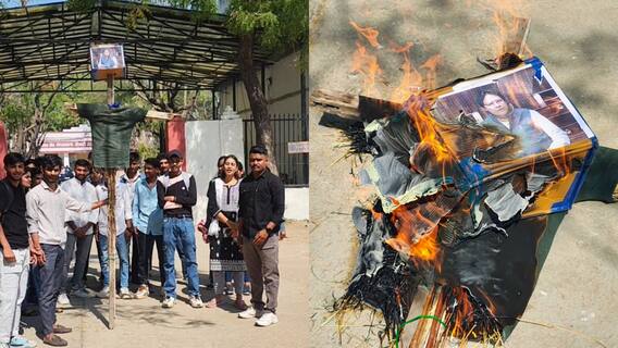 Rana Sanga Controversy: राजस्थान के सिरोही जिले के आबूरोड के राजकीय महाविद्यालय में अखिल भारतीय विद्यार्थी परिषद के कार्यकर्ताओं ने विरोध प्रदर्शन किया. एबीवीपी के कार्यकर्ताओं ने राणा सांगा के खिलाफ दिए गए बयान के विरोध में समाजवादी पार्टी के सांसद रामजी लाल सुमन का पुतला दहन भी किया.
