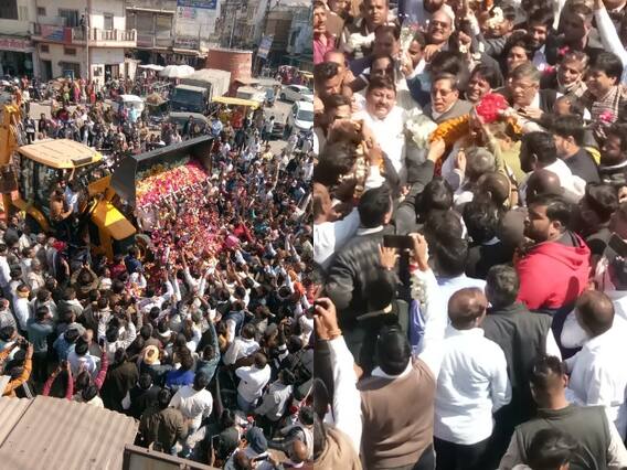 Udaipur News: मुख्यमंत्री अशोक गहलोत (Ashol Gehlot) ने हाल ही में राजनीतिक पदों की नियुक्तियां की है. नियुक्ति में राजस्थान विरासत संरक्षण प्रोन्नति प्राधिकरण के अध्यक्ष का पद प्राप्त करने वाले चित्तौड़गढ़ के सुरेंद्र सिंह जाड़ावत (Surendra Singh Jadawat) जब चित्तौड़ पहुंचे तो उनका भव्य स्वागत किया गया. स्वागत में जेसीबी से एक क्विंटल फूलों की बरसात की गई. इस दौरान वहां उमड़ी भीड़ कोरोना प्रोटोकॉल का पालना करना भूल गई. भीड़ में किसी ने मास्क नहीं पहना हुआ था और सामाजिक दूरी का पालन भी नहीं किया हुआ था. ये नाजारा तब देखने को मिला जब हाल ही में प्रदेश में कोरोना केसों में कमी आई हैं.