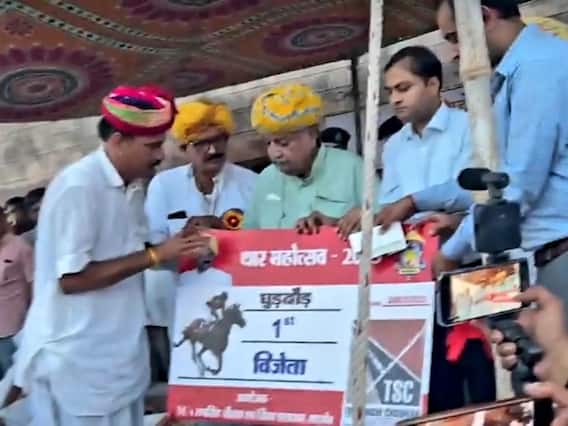 Rajasthan News: राजस्थान के रेतीले धोरों की धरती पर इन जिलो थार महोत्सव (Thar Mahotsav) राजस्थान संस्कृति महोत्सव 2023 का आयोजन चल रहा है. बाड़मेर के तिलवाड़ा पशु मेले (Tiwada Cattle Fair) में गुरुद्वार का आयोजन किया गया. इस कार्यक्रम के साथ-साथ कई तरह के सांस्कृतिक कार्यक्रम भी हुए. घुड़दौड़ के आयोजन में 26 प्रतिभागियों ने भाग लिया. इसमें रेवाल चाल में रूप सिंह खारा अपने घोड़े के साथ प्रथम स्थान पर रहे. गणपत सिंह राजा हिंदुस्तानी घोड़े के साथ दूसरे स्थान पर और हरी राम बिश्नोई हंस घोड़े के साथ तीसरे स्थान पर रहे. विजेताओं को स्मृति चिन्ह व प्रमाण पत्र देकर सम्मानित किया गया.