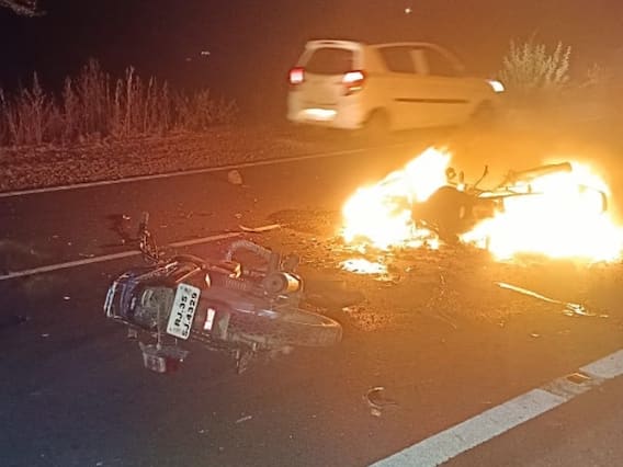 Udaipur Accident News: राजस्थान (Rajasthan) के उदयपुर (Udaipur) में एक दर्दनाक सड़क हादसा हुआ है. उदयपुर संभाग के प्रतापगढ़ जिले में दो बाइकों की आपस में भिड़ंत हो गई. भिड़ंत होने के बाद आग का गुबार उठ गया. यहीं नहीं दो युवक इसमें जिंदा जल गए. ये हादसा प्रतापगढ़ में राष्ट्रीय राजमार्ग 56 पर बीती रात को हुआ.