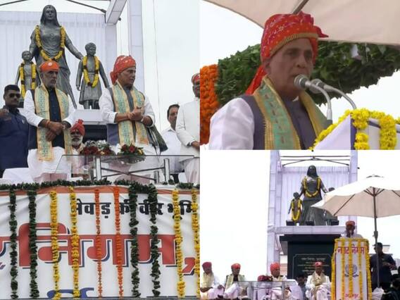 Udaipur News: केंद्रीय रक्षा मंत्री राजनाथ सिंह (Rajnath Singh) मंगलवार को उदयपुर (Udaipur) दौरे पर रहे. इस दौरान उन्होंने उदयपुर के गोवर्धन विलास स्थित पन्नाधाय पार्क में पन्नाधाय महाराणा उदय सिंह और चंदन की प्रतिमाओं का अनावरण किया. इस कार्यक्रम में नेता प्रतिपक्ष गुलाबचंद कटारिया (Gulabchand Kataria), केंद्रीय उर्जा राज्यमंत्री कृष्ण पाल सिंह (Krishna Pal Singh) सहित कई वरिष्ठ नेता उपस्थित थे. राजनाथ सिंह ने अपने भाषण में राजस्थान के शौर्य और पराक्रम की गाथा से लेकर प्रधानमंत्री नरेंद्र मोदी के किए गए कार्य और यूक्रेन में फंसे मेडिकल स्टूडेंट को रेस्क्यू कैसे किया इसके बारे में भी जानकारी दी.
