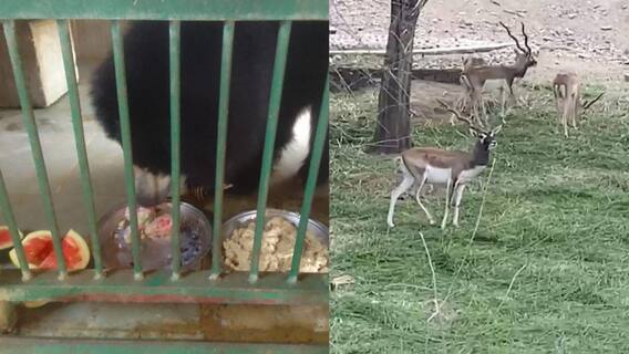 शाकाहारी और मांसाहारी के लिए अलग अलग डाइटउन्होंने बताया कि शाकाहारी और मांसाहारी जानवरों के लिए अलग अलग डाइट दी जा रही है. इसमें चीतल, हिरण सहित अन्य शाकाहारी वन्यजीवों को हरी घास, तरबूज, ककड़ी, खीरा दिए जा रहे हैं. वहीं मांसाहारी में पैंथर, लायन, टाइगर को मांस के साथ पानी में इलेक्ट्रॉल पाउडर मिलाकर दिया जा रहा है. उससे उनके शरीर में नमक की कमी दूर हो सके. उनको नहलाकर एंक्लोजर में रखा जा रहा है. जहां पर ग्रीन नेट से कवर किया ही और कूलर लगा रखे है.