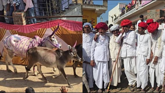 Rajasthan News: सिरोही का वासा गांव अनोखी परम्परा के लिए जाना जाता है. गांव में ग्रामीण गोवर्धन पूजा (Govardhan Puja 2024) के साथ गायों की दौड़ कराते हैं. गायों की दौड़ देखने बड़ी संख्या में लोग इकट्ठा हो जाते हैं. मान्यता है कि गायों को दौड़ाने से अगले साल में सुख समृद्धि की प्राप्ति होगी. अच्छे भविष्य का संकेत मिलने से क्षेत्र के लोगों में खुशी छा गई. इस बार भी ग्रामीणों ने दिवाली के दूसरे दिन प्राचीन परंपरा का पालन किया.