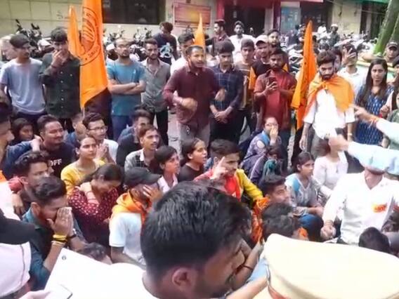 ABVP Protest: उत्तराखंड के हेमवती नंदन बहुगुणा गढ़वाल यूनिवर्सिटी से संबद्ध सभी कॉलेजों में पिछलों वर्षों की भांति मेरिट के आधार पर प्रवेश कराए जाने की मांग को लेकर अखिल भारतीय विद्यार्थी परिषद(ABVP) लगातार आंदोलन कर रही है. इसी कड़ी में आज अपनी मांगों को लेकर एबीवीपी कार्यकर्ताओं ने डीएवी पीजी कॉलेज के छात्र संघ अध्यक्ष दयाल बिस्ट के नेतृत्व में पवेलियन ग्राउंड से लेकर जिलाधिकारी कार्यालय तक पैदल मार्च निकाला. इस दौरान एबीवीपी कार्यकर्ताओं ने अपनी मांगों को लेकर जमकर नारेबाजी करते हुए प्रदर्शन किया. कलेक्ट्रेट पहुंचने के बाद एबीवीपी कार्यकर्ता और कॉलेज के छात्र जिलाधिकारी को ज्ञापन सौंपने की मांग करने लगे, जिसके बाद छात्र प्रतिनिधियों ने अपनी मांगों को लेकर जिलाधिकारी के माध्यम से एचआरडी मिनिस्टर के नाम ज्ञापन सौंपा.