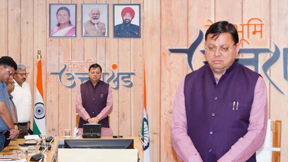 मुख्यमंत्री पुष्कर सिंह धामी ने शुक्रवार को सीएम आवास में उच्च अधिकारियों के साथ बैठक के दौरान अहमदाबाद में हुए विमान हादसे में जान गंवाने वालों को श्रद्धांजलि दी. उन्होंने मौन रखकर दिवंगत आत्माओं की शांति के लिए प्रार्थना की एवं शोकाकुल परिजनों के प्रति अपनी संवेदनाएं व्यक्ति की.
