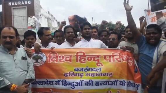 बजरंग दल ने किया विरोध प्रदर्शनबांग्लादेश की घटना खिलाफ बजरंग दल के इस विरोध प्रदर्शन में बड़ी संख्या में लोग शामिल हुए. इस दौरान बजरंग दल ने अटल चौराहे पर प्रदर्शन करते हुए राष्ट्रपति को संबोधित करते हुए ज्ञापन दिया. इस दौरान उन्होंने सरकार से बांग्लादेश की घटना पर रोक लगाने की मांग की है. बजरंग दल के वरिष्ठ नेता ने कहा कि बांग्लादेश में हिंदू व मंदिरों को टारगेट किया जा रहा है. महिलाओं के साथ बर्बरता हो रही है. इसे रोकना बेहद ज़रूरी है. उन्होंने कहा कि सरकार को जल्दी ही इन घटनाओं पर रोक लगाने के लिए आवश्यक कदम उठाने चाहिए. अगर ऐसा नहीं हुआ तो बजरंग दल बांग्लादेश का मोर्चा संभालने के लिए तैयार है.
