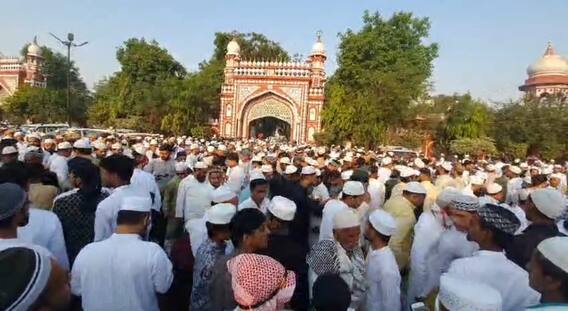 मस्जिदों में पढ़ी गई ईद की नमाजरमजान के पाक माह में एक माह तक खुदा की इबादत करने के बाद जब गुरुवार को ईद का त्योहार आया तो हर किसी के चेहरे पर खुशी देखने को मिली. लोगों ने एक साथ खुदा की इबादत की और फिर एक दूसरे के गले लगकर ईद की बधाइयां दी. अलीगढ़ में ईद की नमाज नई ईदगाह और पुरानी ईदगाह शाहजमाल में अमन और चैन के साथ संपन्न कराई गई. ईद उल फितर की नमाज के दौरान सड़कों पर पढ़ी जाए. इसको लेकर भी पुलिस प्रशासन के द्वारा सुरक्षा के मद्देनजर पुलिस फोर्स तैनात की गई थी.
