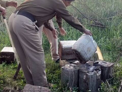 की गई बड़ी कार्रवाई बता दें कि, ये पूरा मामला अमरोहा के थाना धनोरा क्षेत्र के गांव शेरपुर गंगा किनारे खादर इलाके का है. यहां गंगा किनारे शराब माफियाओं ने गहरे गड्ढे बनाकर शराब छिपा रखी थी. शराब माफियायों पर अमरोहा पुलिस ने बड़ी कार्रवाई करते हुए 5 हजार लीटर लहन, 500 लीटर अवैध शराब को गड्ढों से निकाल कर नष्ट किया है.