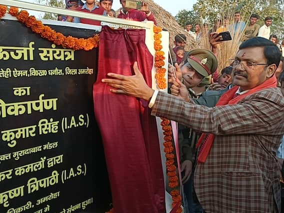 जिलाधिकारी बाल कृष्ण त्रिपाठी ने जनसहयोग से 50 वाट का सोलर प्लांट लगवाया है जिसका गुरुवार को उद्घाटन किया गया. इस अवसर पर विधिवत पूजा भी कराई गई. जिलाधिकारी बाल कृष्ण त्रिपाठी की अध्यक्षता में आयोजित उद्घाटन कार्यक्रम में मुरादाबाद के आयुक्त आंजनेय कुमार सिंह भी मौजूद थे. आंजनेय कुमार ने प्लांट का उद्घाटन किया. इस प्लांट को बनाने में 1.3 करोड़ रुपये खर्च किए गए हैं. गांव में प्लांट लगते ही ग्रामीणों की खुशी देखने लायक है. बताया जा रहा है कि बीते 75 वर्ष में यहां लाइट तो दूर बिजली का खंभा तक नहीं लगाया गया था. यह गांव एक तरफ गंगा नदी और दूसरी तरफ नहर से घिरा हुआ है.