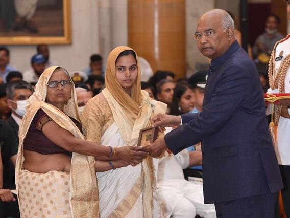 UP News: छत्तीसगढ़ (Chhattisgarh) में दो साल पहले नक्सली हमले में शहीद हुए बांदा (Banda) निवासी सीआरपीएफ (CRPF) जवान विकास कुमार को मरणोपरांत शौर्य चक्र से सम्मानित किया गया. राष्ट्रपति भवन के दरबार हॉल में आयोजित एक कार्यक्रम में राष्ट्रपति रामनाथ कोविंद ने मंगलवार को यह सम्मान उनकी पत्नी नंदिनी को सौंपा. इस सम्मान समारोह में विकास की मां कैलासिया देवी भी मौजूद रहीं.