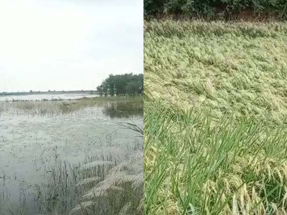 UP News: यूपी के बाराबंकी जिले में हुई जोरदार बारिश की वजह से किसानों की धान की फसल डूब गई है. वहीं धान की फसल बरसात के दौरान तेज आंधी आने की वजह से गिर चुकी है. पहले सूखा और अब बारिश ने किसानों की कमर तोड़ दी है. सबसे ज्यादा फसल सरयू नदी के तराई में बर्बाद हुई है. जहां न सिर्फ धान बल्कि गन्ना की फसल भी प्रभावित हुई है. राजधानी लखनऊ के सबसे करीब जनपद बाराबंकी में न सिर्फ आलू टमाटर मेंथा और सब्जी की पैदावार अच्छी होती हैं, बल्कि धान की खेती के साथ ही घाघरा नदी के आसपास गन्ना भी भारी मात्रा में किसान पैदा करते हैं, लेकिन इस बरसात की वजह से रानीमऊ तटबंध और एल्गिन चरसरी बांध के अंदर हजारों बीघा धान पानी में डूब गया.