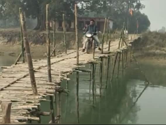 Uttar Pradesh News: यूपी के बस्ती (Basti) जिले में एक और बांस और बल्ली पटरी का पुल अस्तित्व में आ गया है. बता दें कि बस्ती जिले की कुवानों नदी के कछुआड़ घाट पर पुल व अप्रोच निर्माण के लिए राज्य सेतु निगम की तरफ से 90 लाख रुपये का प्रस्ताव शासन को भेजा गया था, जिसकी स्वीकृति शासन की तरफ से दिसम्बर 2021 में मिल भी गई. पुल व अप्रोच निर्माण के लिए शासन ने 50 लाख रिलीज भी कर दिए, लेकिन फिर भी निर्माण कार्य नहीं कराया गया. बजट रिलीज होने के बाद भी पुल का निर्माण नहीं हुआ. आने जाने में काफी परेशानी होने की वजह से ग्रामीण विवश हो गए. इसके बाद ग्रामीणों ने जन सहयोग से 70 हजार की लागत से लगातार चार दिन काम करके लकड़ी का पुल बना दिया ताकि वे आसानी से नदी पार कर सकें, लेकिन ये पुल कभी भी टूट सकता है.