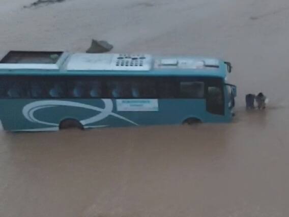 Bharat-Nepal Maitri Bus Trapped In River: उत्तराखंड (Uttarakhand) में मौसम विभाग की चेतावनी के बाद हरिद्वार (Haridwar) क्षेत्र में लगातार बारिश हो रही है. इसकी वजह से नदी-नाले उफान पर हैं. जिले के चिड़ियापुर बॉर्डर (Chidiyapur Border) के पास बहने वाली कोतवाली नदी में अचानक तूफान आने से इसे पार कर रही भारत-नेपाल मैत्री बस पानी के तेज बहाव में बहने लगी. बहते-बहते बस नदी के किनारे पत्थरों में जा फंसी. इसके बाद बस में सवार तमाम यात्री आनन-फानन में उतरकर नदी के ऊपर बना रहे पुल के पिलरों के ऊपर चढ़ गए. कुछ यात्री बस में फंसे रहे, जिन्हें बाद में एनडीआरएफ (NDRF) और एसडीआरएफ (SDRF) की टीम ने मौके पर पहुंचकर बचाया.