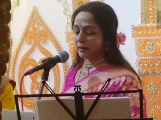 Hema Malini Sang Bhajan: फिल्म एक्ट्रेस और मथुरा से बीजेपी सांसद (BJP MP) हेमा मालिनी (Hema Malini) शनिवार को अपने संसदीय क्षेत्र पहुंची जहां उन्होंने वृंदावन (Vrindavan) के प्रसिद्ध राधा रमण मंदिर (Radha Raman Temple) में भगवान श्रीकृष्ण (Shri Krishna) के दर्शन किए और पूजा अर्चना की. इस दौरान उनका एकदम अलग अंदाज देखने को मिला, वो कृष्ण भक्ति में इतना लीन हो गई कि मंदिर में भजन गाने लगीं. उन्होंने हरे कृष्णा...हरे कृष्णा..कृष्णा..कृष्णा.. हरे हरे...भजन गया. हेमा मालिनी को भजन गाते देख वहां मौजूद भक्त भी उनके साथ भजन गाने लगे और भक्ति में झूम उठे.