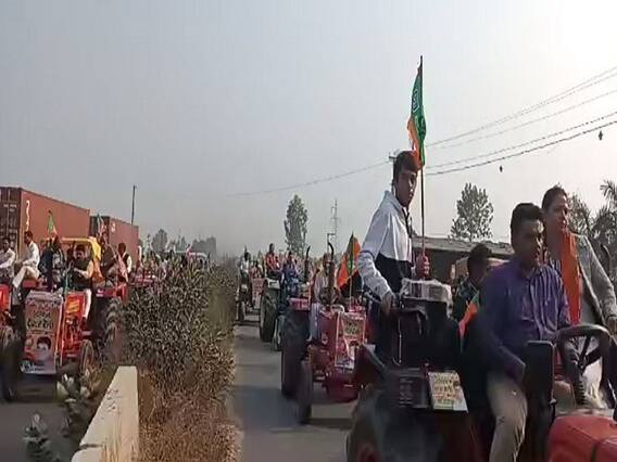 BJP Tractor March in Shamli: उत्तर प्रदेश के शामली में बीजेपी ने किसानों को जागरूक करने के लिए ट्रैक्टर मार्च निकाला गया. इस दौरान ट्रैक्टर मार्च के माध्यम से बीजेपी नेताओं ने प्रदेश सरकार के द्वारा चलाई जा रही जन कल्याणकारी योजनाओं का प्रचार-प्रसार किया.