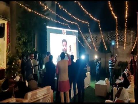 निकाह के दौरान बराती भी थे, घराती भी थे, दुल्हन 16 श्रृंगार कर तैयार थी, दावत भी हो रही थी, बस नहीं था तो दूल्हा. दूल्हा दिखा तो बड़ी सी इस स्क्रीन के पर्दे पर. डॉ हादी हसन व कहकशा के ऑनलाइन निकाह की पूरी तैयारी की गयी थी. बाकायदा निकाह के कार्ड पर भी ऑनलाइन निकाह करने की बात लिखी गयी थी.