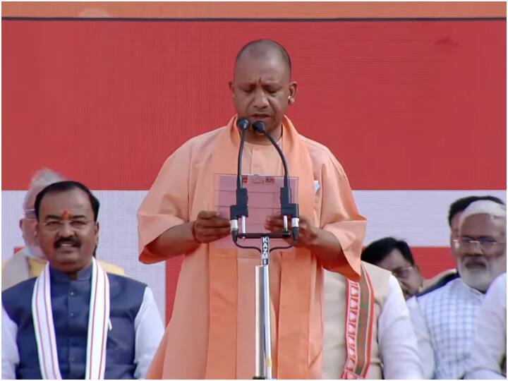 योगी आदित्यनाथ ने आज राजधानी के इकाना स्टेडियम में दोबारा यूपी के मुख्यमंत्री पद की शपथ ली. योगी आदित्यनाथ को राज्यपाल आनंदीबेन पटेल ने पद व गोपनीयता की शपथ दिलाई है. समारोह में प्रधानमंत्री नरेंद्र मोदी, कई केंद्रीय मंत्री और भाजपा शासित राज्यों के मुख्यमंत्री शामिल हुए. उपमुख्यमंत्री केशव प्रसाद मौर्य तथा ब्रजेश पाठक के साथ कैबिनेट मंत्री सुरेश कुमार खन्ना, सूर्य प्रताप शाही, स्वतंत्र देव सिंह और बेबी रानी मौर्य ने उत्तर प्रदेश के मंत्री पद की शपथ ग्रहण की. लक्ष्मी नारायण चौधरी, जयवीर सिंह, धर्मपाल सिंह, नंद गोपाल गुप्ता नंदी, भूपेन्द्र सिंह चैधरी, अनिल राजभर, जितिन प्रसाद, राकेश सचान, अरविन्द कुमार शर्मा, योगेन्द्र उपाध्याय, आशीष पटेल और निषाद पार्टी के संजय निषाद ने कैबिनेट मंत्री की शपथ ली.